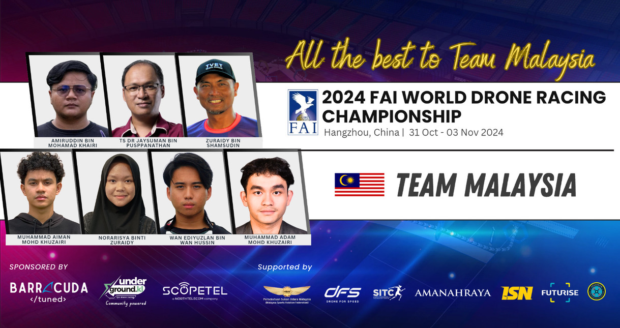 In October 2023, Malaysia’s FPV drone racing scene hit a historic milestone—for the first time ever, a national FPV drone racing team represented the country at the World Drone Racing Championship (WDRC) in China. This incredible journey was made possible through pure community support, with Underground.KL stepping up to self-sponsor five talented pilots to compete on the global stage.