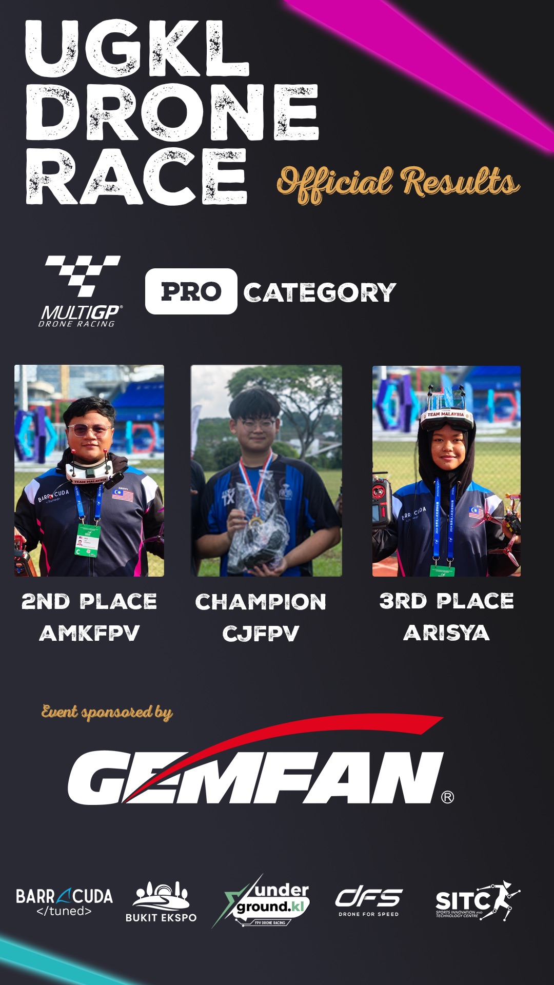 And the final podium? CJFPV from Korea took home the win, proving unstoppable. AMKFPV secured second, while Arisya clinched third, marking a historic moment for Malaysia’s young rising star.